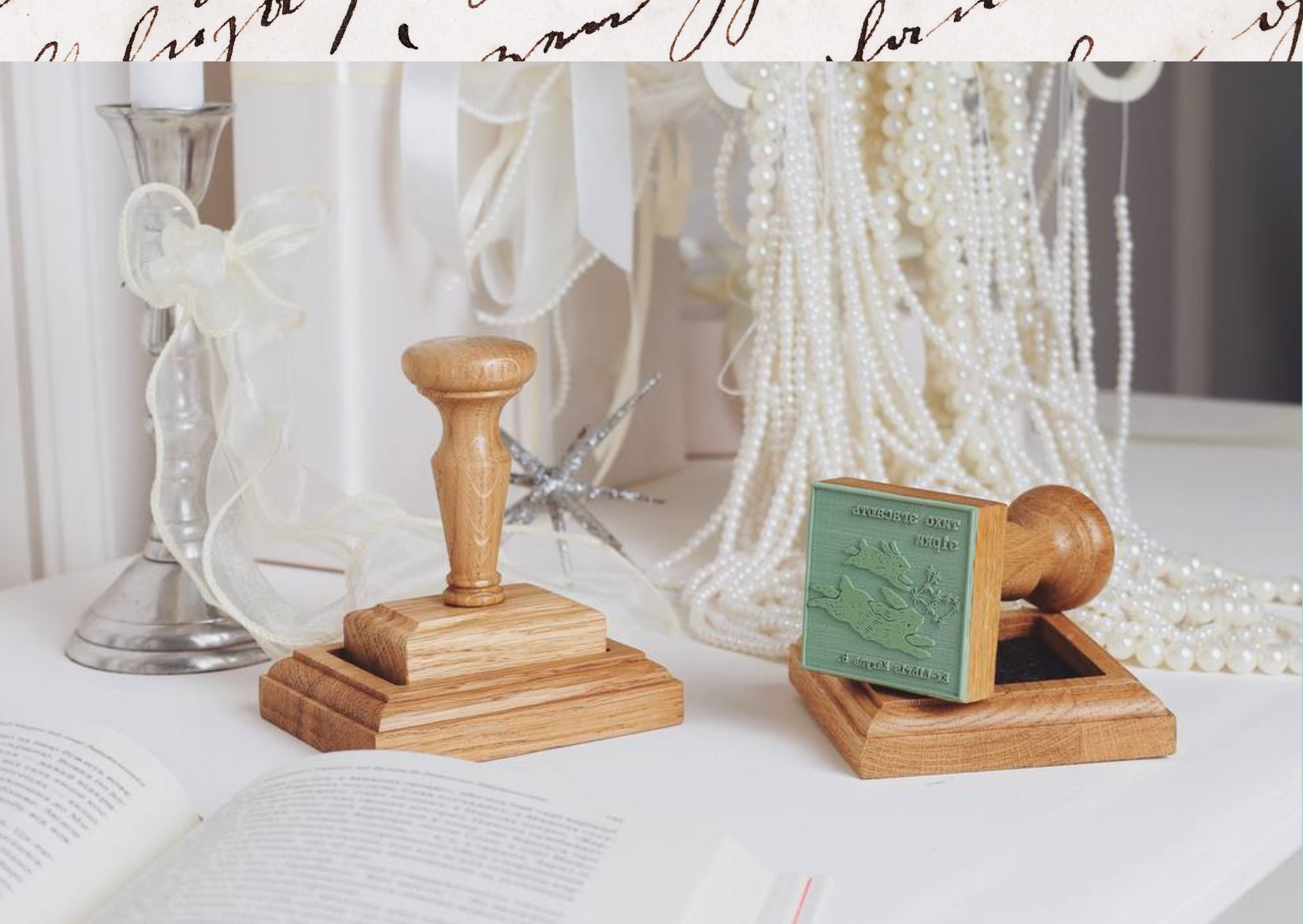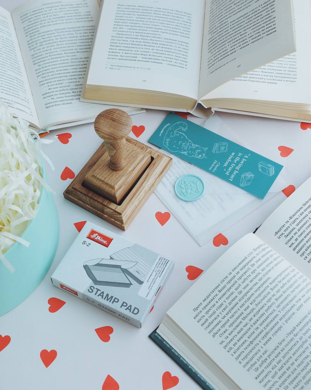 Готовий made by hand екслібрис з підставкою, окрема чорнильна подушечка & персональна пам'ятка в подарунковому упакуванні.